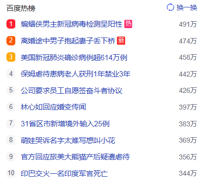 1.蝙蝠俠男主新冠病毒檢測呈陽性 獵頭熱點熱度491萬