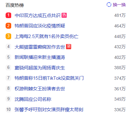 1.中印雙方達(dá)成五點(diǎn)共識(shí)  獵頭熱點(diǎn)熱度481萬