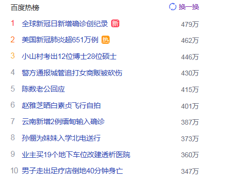 1.全球新冠日新增確診創(chuàng)紀錄 獵頭熱點熱度479萬