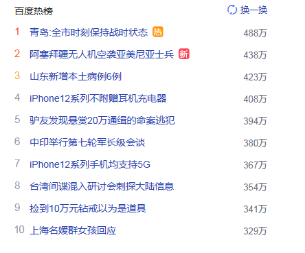 1. 青島:全市時(shí)刻保持戰(zhàn)時(shí)狀態(tài)  獵頭熱點(diǎn)熱度488萬