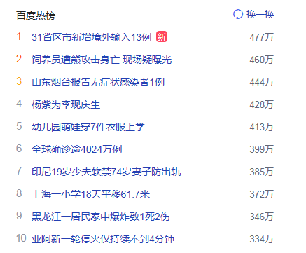 1.31省區(qū)市新增境外輸入13例 獵頭熱度熱點(diǎn)477萬