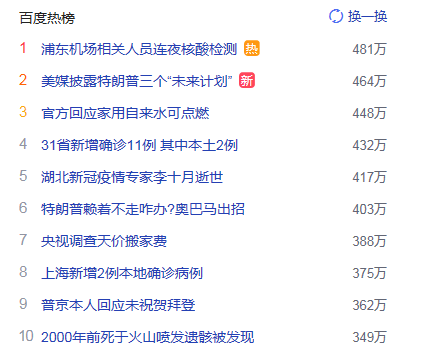 1. 浦東機場相關(guān)人員連夜核酸檢測 獵頭熱度熱點481萬